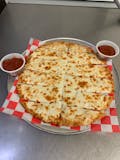 Thin Pizza dough, garlic butter and loads of cheese. Comes with 2 sides of pizza sauce.